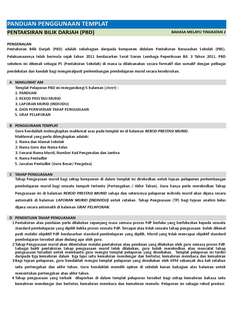 Templat Pelaporan Pbd Kssm Tingkatan 2 Bahasa Melayu V2 Pdf